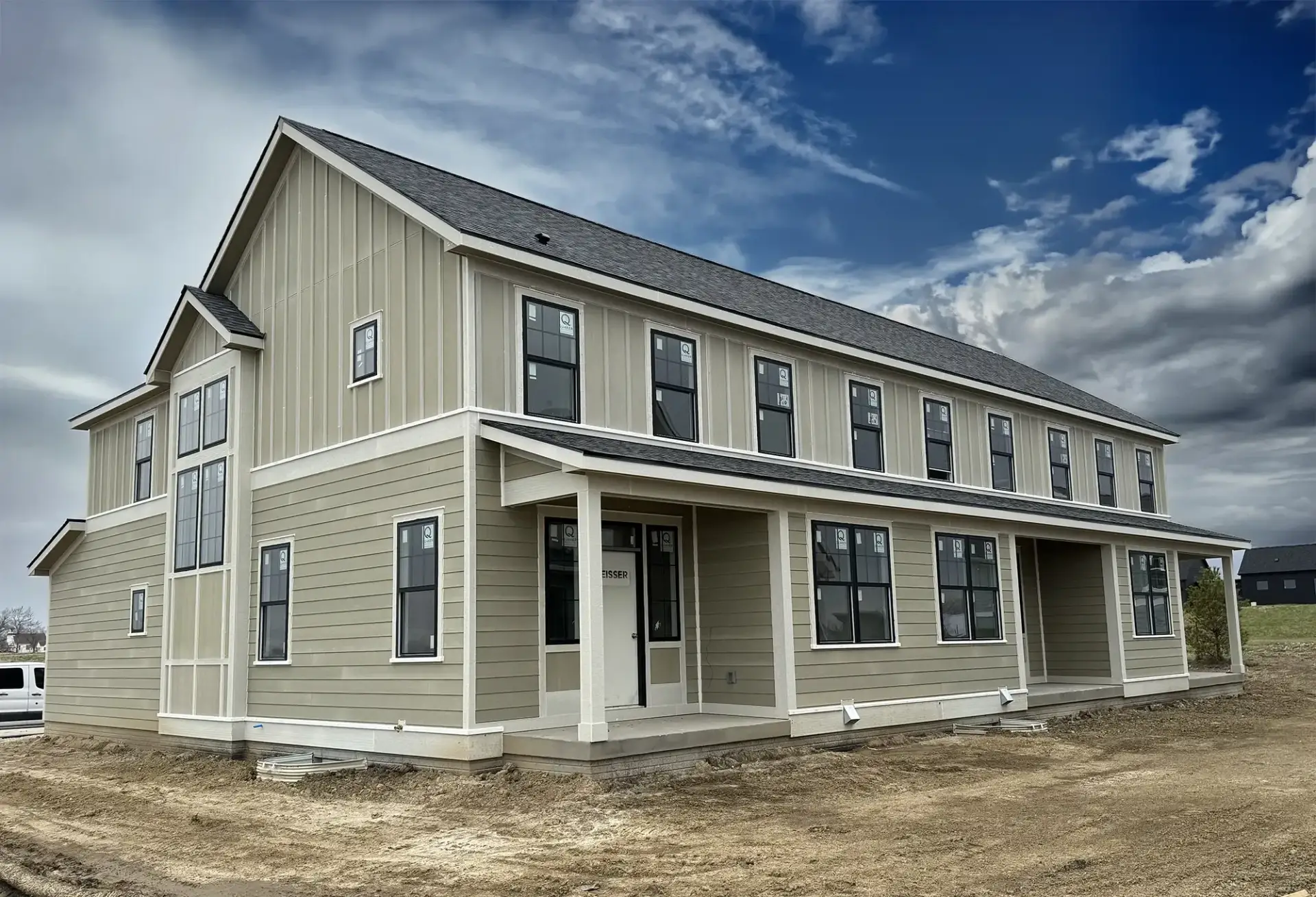 Architecturally, the homes are inspired by the rural agricultural vernacular of the region. By celebrating individual homes with detail and textures they enable a blend of modern, transitional, and traditional styles to coexist side by side. Front porches and pitched rooftops offer a common baseline character, and strategies to minimize the dominance of the garage door help reinforce the pedestrian-oriented nature of the streetscape.
